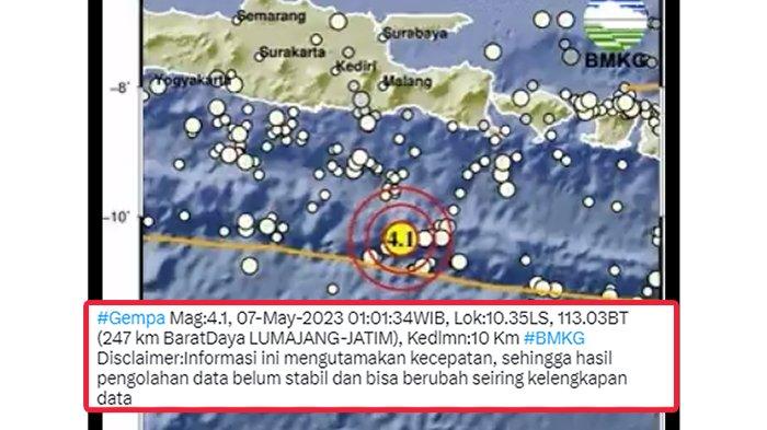 Informasi gempa terkini di Indonesia pada Minggu, 7 Mei 2023, guncang Kabupaten Lumajang, Provinsi Jawa Timur, simak imbauan BMKG.