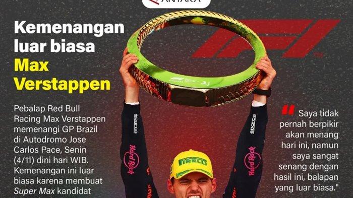 Pebalap Red Bull Racing Max Verstappen memenangi GP Brazil di Autodromo Jose Carlos Pace, Senin (4/11) dini hari WIB.