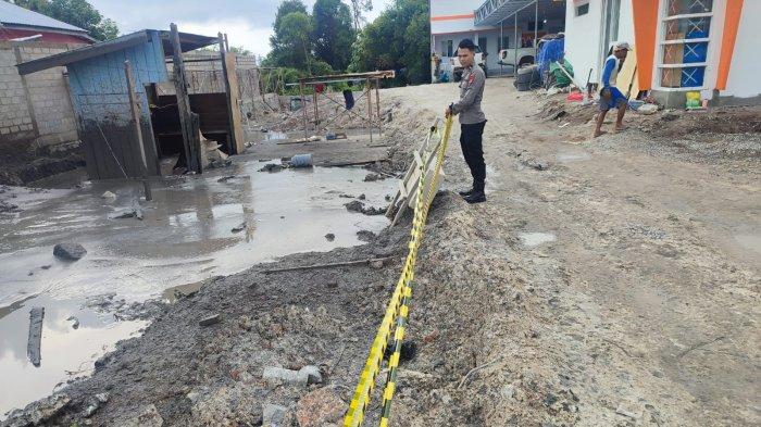 Warga RT 05 Desa Mangkupadi digegerkan dengan adanya semburan air bercampur di salah satu lahan dekat permukiman warga. Polisipasang police line.